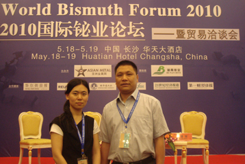 亞洲金屬小金屬部主管曹靜敏高級分析師和湖南鉍業(yè)有限責任公司李桂龍總經(jīng)理合影