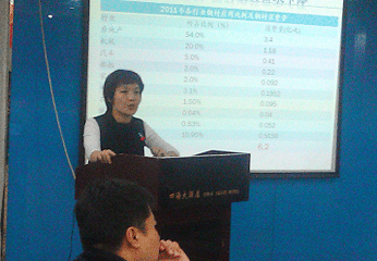 - 最后,亞洲金屬網(wǎng)爐料事業(yè)部經(jīng)理吳瑞娟女士做了精彩的發(fā)言,其主題為中國鋼材市場經(jīng)濟(jì)運行走勢分析及展望。首先對2011年中國鋼材市場進(jìn)行了回顧,整體表現(xiàn)低迷,行業(yè)供需矛盾仍明顯,供大于求。2011年1-10月中國粗鋼產(chǎn)量達(dá)5.8億噸,同比增長了11.1%。預(yù)計全年粗鋼產(chǎn)量將會突破6.6億噸。1-10月份中國粗鋼產(chǎn)量占世界鋼協(xié)統(tǒng)計的全球64個主要產(chǎn)鋼國家和地區(qū)粗鋼總產(chǎn)量的46.1%。另一方面,鋼鐵行業(yè)終端需求低迷,需求來源主要包括房地產(chǎn)、機械、汽車、船舶和家電等。受房產(chǎn)打壓政策影響,中國房地產(chǎn)行業(yè)全年呈低迷狀態(tài),開工和竣工面積均同比回落。汽車、機械、船舶和家電行業(yè)雖有增長,但同步增長率較之粗鋼相形見絀。同時,吳經(jīng)理提出鋼鐵行業(yè)“兩高一低”的弊病,即高消耗、高庫存和低效益。而后,她對2012年鋼鐵市場做出了展望。