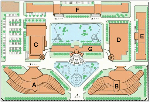 - A – 索菲特西翼 B – 索菲特東翼 C – 大劇院 D – 會展中心